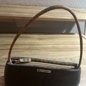 Authentic Burberry Y2K Bag Baguette structured grey plaid London purse