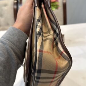 Authentic Burberry vintage shoulder bag. It has stains on the front that ca. be cleaned but the back and corners are good and clean. The inside is also clean and not rips or damage. It has a storage smell but not foul smell. PRICE IS FIRM!!!