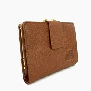 Authentic Burberrys Horse Logo Brown Leather Compact Bifold Snap Wallet