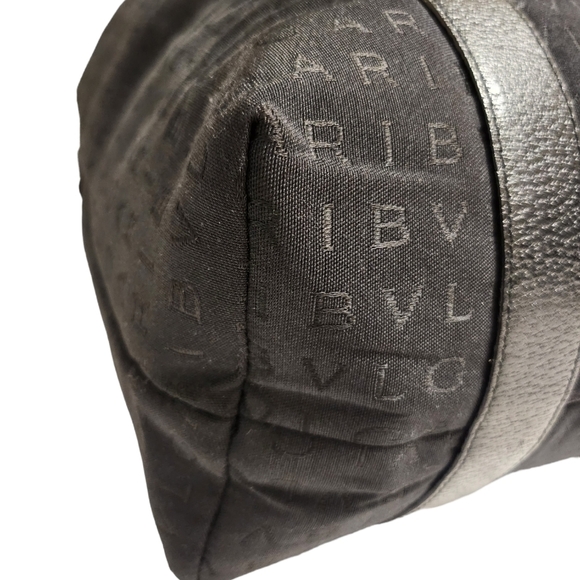Authentic Bvlgari Canvas Monogram Tote with Leather Trim Black