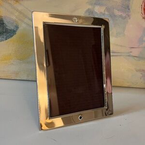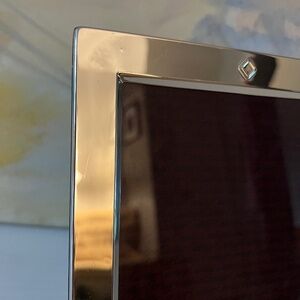 Elevate your decor with this authentic Cartier photo frame, masterfully crafted in high-polished sterling silver with rich dark wood — a true reflection of Cartier’s timeless sophistication and refined craftsmanship. The frame remains in good pre-owned condition, with light signs of gentle use. Originally designed with two dark blue gemstone embellishments (top and bottom), the top gemstone is no longer present, as reflected in the pricing. A rare opportunity to own a piece of Cartier elegance.