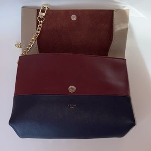 Celine bag very good condition tricolor Blue Beige Burgundy interior. Iโve added a chain it is removable. Shoulder or crossbody. Soft calf leather exterior, interior is brushed suede. clean and gently preowned. Smaller bag but will hold all your essentials ๐ great for day and evening hours ๐. Top rated trusted seller and suggested user selling authentic luxury items on posh since 2014. Posh certified authentic luxury reseller.