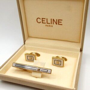 Authentic CELINE Macadam Cufflinks & Tie Pin Set metal [Used]