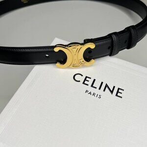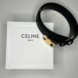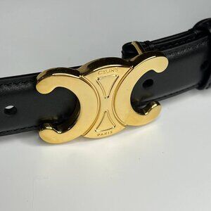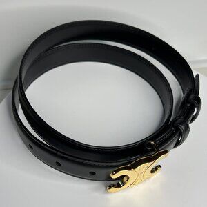 Authentic CELINE Women's Black Calfskin Leather Belt Gold Buckle 85cm