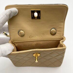 Authentic CHANEL 24K Vintage Classic Single Flap Quilted Lambskin Chain Bag Tan