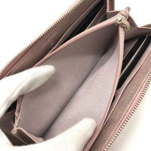 Authentic CHANEL A80003 CC Mark Chain Me Matelasse Zip Around Long Wallet Leathe