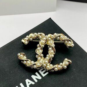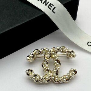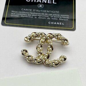 Authentic CHANEL BROOCH gold white pearl rhinestone like new