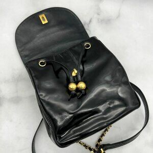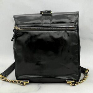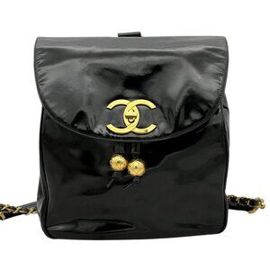 Authentic CHANEL Backpack Vintage Bag Patent Leather Black CC Turnlock Chain