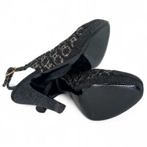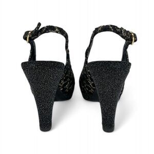Stay trendy in these iconic sandals from Chanel. Crafted using black quality material in a stylish design, it features a signature prints all over, black cap toe, gold tone CC logo, slingback straps, and block heels. Always be ready!