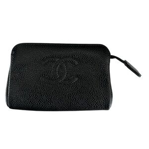 Authentic CHANEL Black Caviar Leather Mini Pouch with Box & Dust Cover