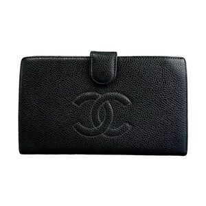 Authentic CHANEL Black Caviar Leather Timeless Long Bifold Kisslock Wallet