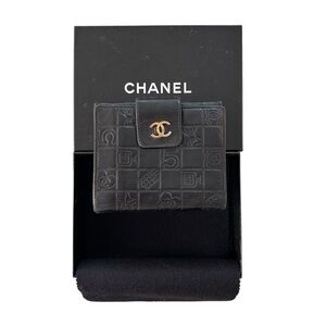 Authentic CHANEL Black Lambskin Leather Lucky Charms Embossed Bifold Wallet
