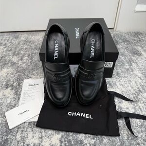 Authentic CHANEL Black Leather Platform Shoes with Dust bags and Original Box
