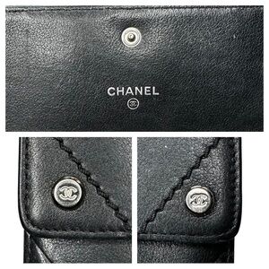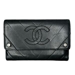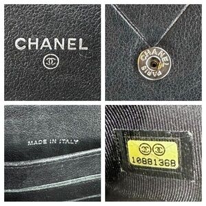 Authentic CHANEL Black Quilted Chevron Lambskin Leather CC Button Wallet Clutch