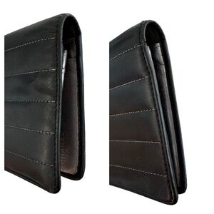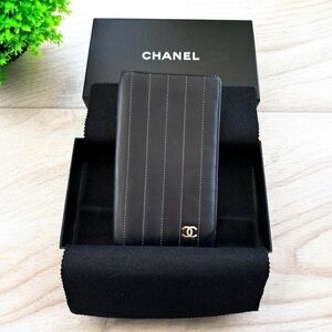 Authentic CHANEL Black Smooth Pin Stripe Quilted Leather Long Wallet with Box
