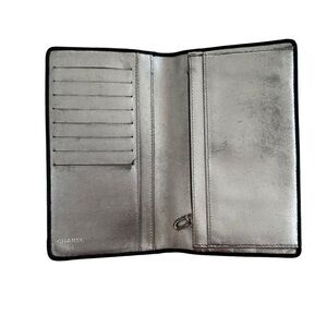 Authentic CHANEL Black Smooth Pin Stripe Quilted Leather Long Wallet with Metallic Silver Leather Interior (Includes Box & Dust Cover)