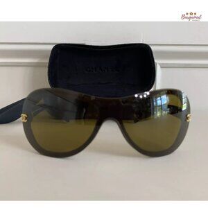 Authentic CHANEL Brown Frame Goldtone Chanel "CC" Logos Tint Sunglasses
