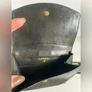 Authentic CHANEL CC Logo Coin Case Wallet Caviar Skin Leather Black Vintage