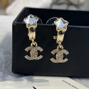 Authentic CHANEL CC Logo Star Dangle Earrings