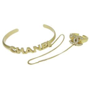 Authentic CHANEL CC Logos Bangle Chain Ring