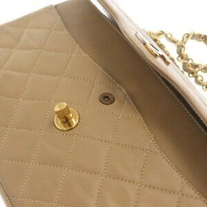 Authentic CHANEL CC Paris Limited Double Flap Bag Lambskin Matelasse Chain Beige