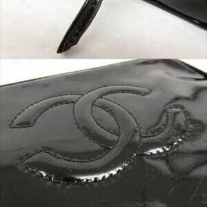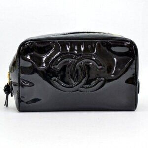 Authentic CHANEL CC Patent Leather Clutch Cosmetic Makeup Case Pouch Black Bag