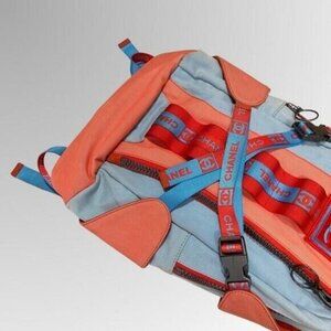 Authentic CHANEL CC Sport Line Nylon Backpack Bag Multicolor Blue Red Vintage