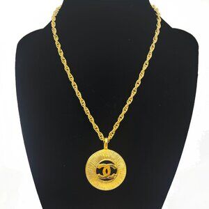 Authentic CHANEL CC Vintage 24K Gold Plated Necklace Chain Medallion Pendant