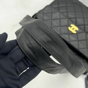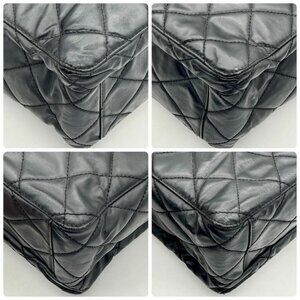 Authentic CHANEL CC Vintage Matelasse Turnlock Shoulder Bag Leather Black Chain