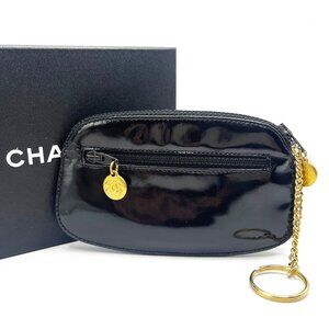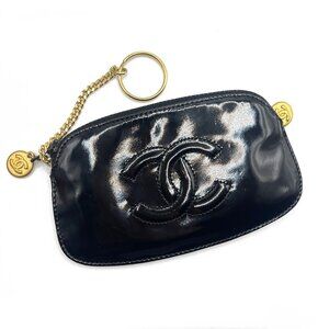 Authentic CHANEL CC Vintage Patent Timeless Coin Purse Pouch Key Chain Charm Bag