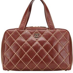 Authentic CHANEL CC Wild Stitch Vintage Quilted Bowler Hand Bag Lambskin