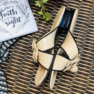Slide on sandals, authentic off white classic color with black trim. More details on photos.