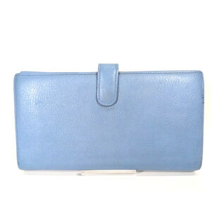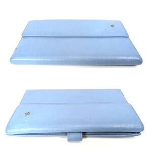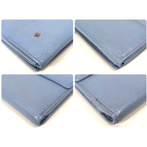 Authentic CHANEL Camellia Wallet Calfskin Wallet Light Blue