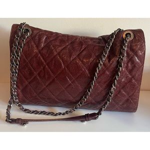Authentic CHANEL Crumpled Grained Calfskin Jumbo CC Crave Flap Burgundy Bag