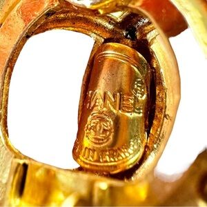 Authentic CHANEL Gold Timeless Interlocking C Round Clip On Earrings