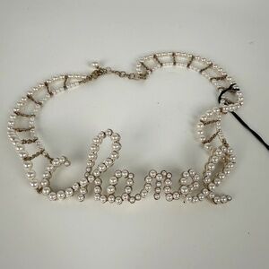 Authentic CHANEL Imitation Pearl Swirling Logo Letter Choker Necklace
