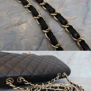 Discontinued original Chanel jumbo flap in caviar leather. ✨ Key details of the Jumbo Single Flap: Slimmer profile (8 cm depth vs. 10 cm in Jumbo Double). Lighter weight than the double flap. Produced mainly in the 2000s–2010s, no longer sold in boutiques. Highly sought after on resale because of the practicality (roomier interior + lighter feel). W:30cm H:18㎝ D:8㎝ Shoulder length:78-136cm