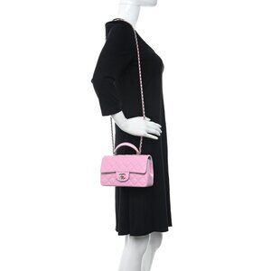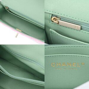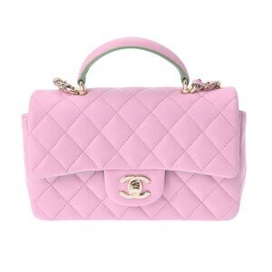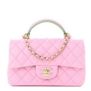 Authentic CHANEL Lambskin Quilted Mini Top Handle Rectangular Flap Lilac Green