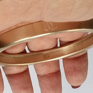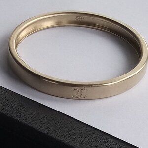 Authentic CHANEL Logo gold plated bracelet bangle Firm Price