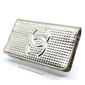 Authentic CHANEL Micro Chocobar Bifold Long Wallet Silver Coco Mark