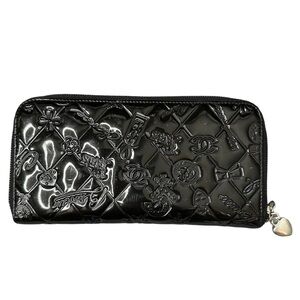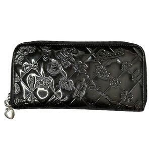 Authentic CHANEL Precious Symbols Black Patent Quilted Leather Zippy Wallet
