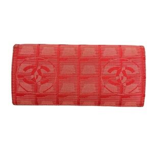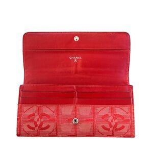 Authentic CHANEL Red Travel Line Leather & Canvas Long Wallet