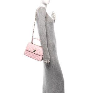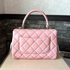 Authentic CHANEL Trendy Lambskin Quilted Small CC Dual Handle Flap Bag Pink Tote