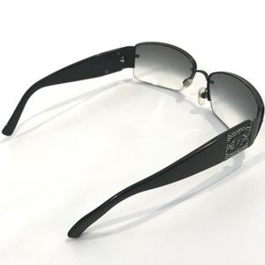 CHANEL black rhinestone crystal sunglasses. CC logo on side adorned by rhinestones. Black ombre lenses. Serial number in right lense corner show authenticity #AC3790571. Chanel carved in metal bridge. Made in Italy.