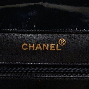 Authentic CHANEL XL Patent Shopping Tote Quilted Chain Shoulder Bag Gold Purse
