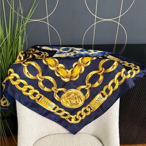 Authentic CHANEL silk scarf navy gold color