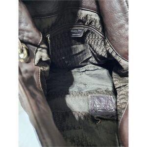 Authentic CHRISTIAN DIOR Cannage Quilted Lambskin Leather Soft Hobo Bag Brown