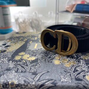Authentic CHRISTIAN DIOR SADDLE BELT Black Jacquard Size 95 34