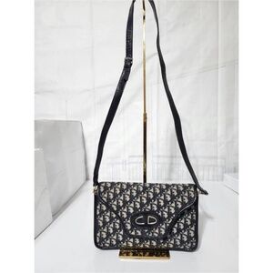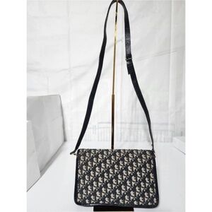 Authentic CHRISTIAN DIOR Vintage Trotter Jacquard Shoulder Bag Black/Beige
