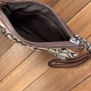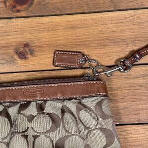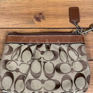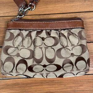 Authentic COACH #F43434 Signature Print Pleated Wristlet - Khaki/Mahogany